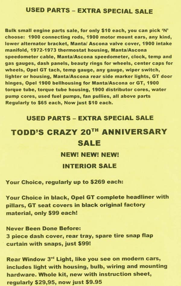 You can Email Us at OpelsUnlimited@excite.com